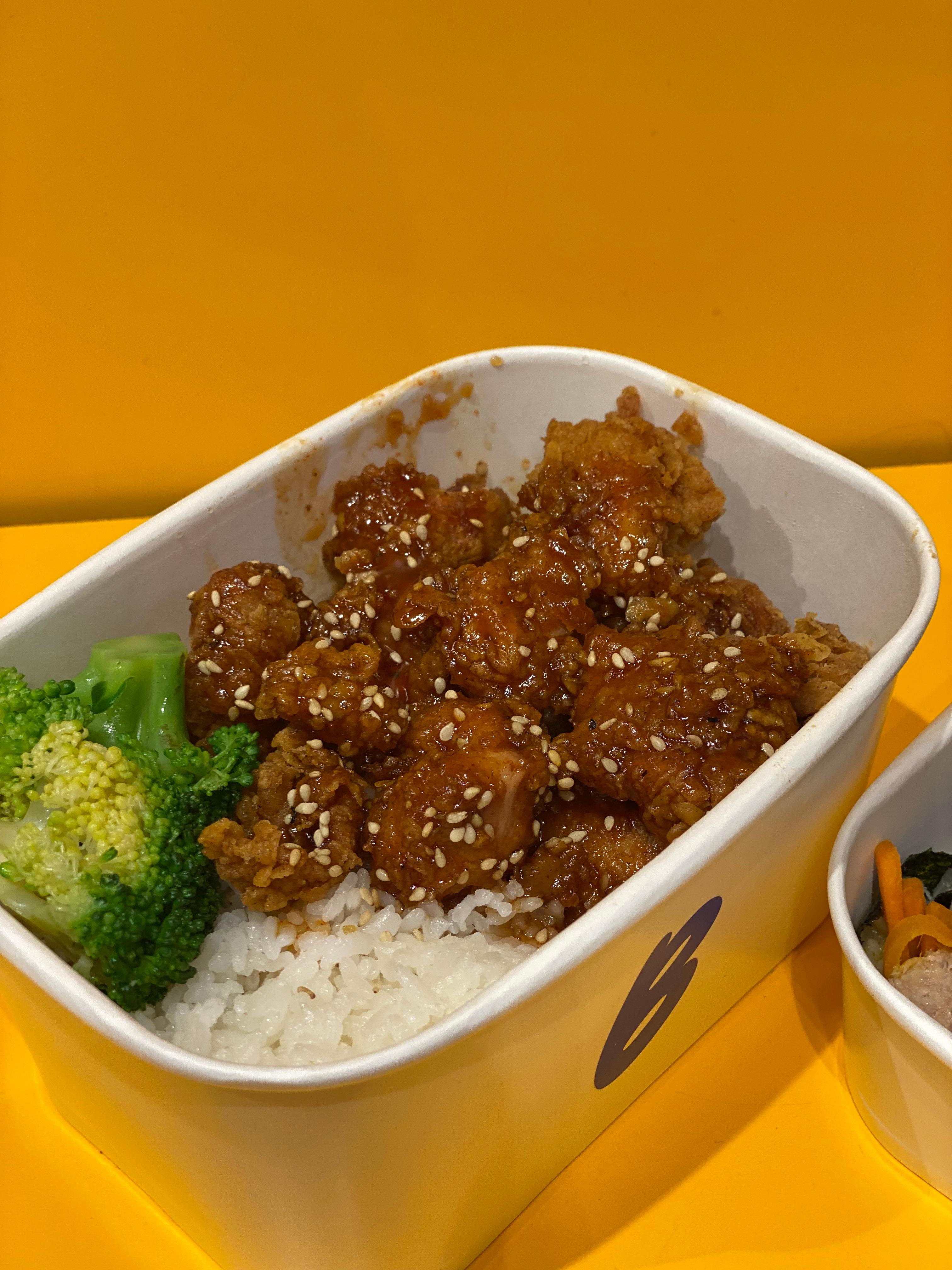 At Bunsik, it’s served with crispy fried chicken on top of warm rice